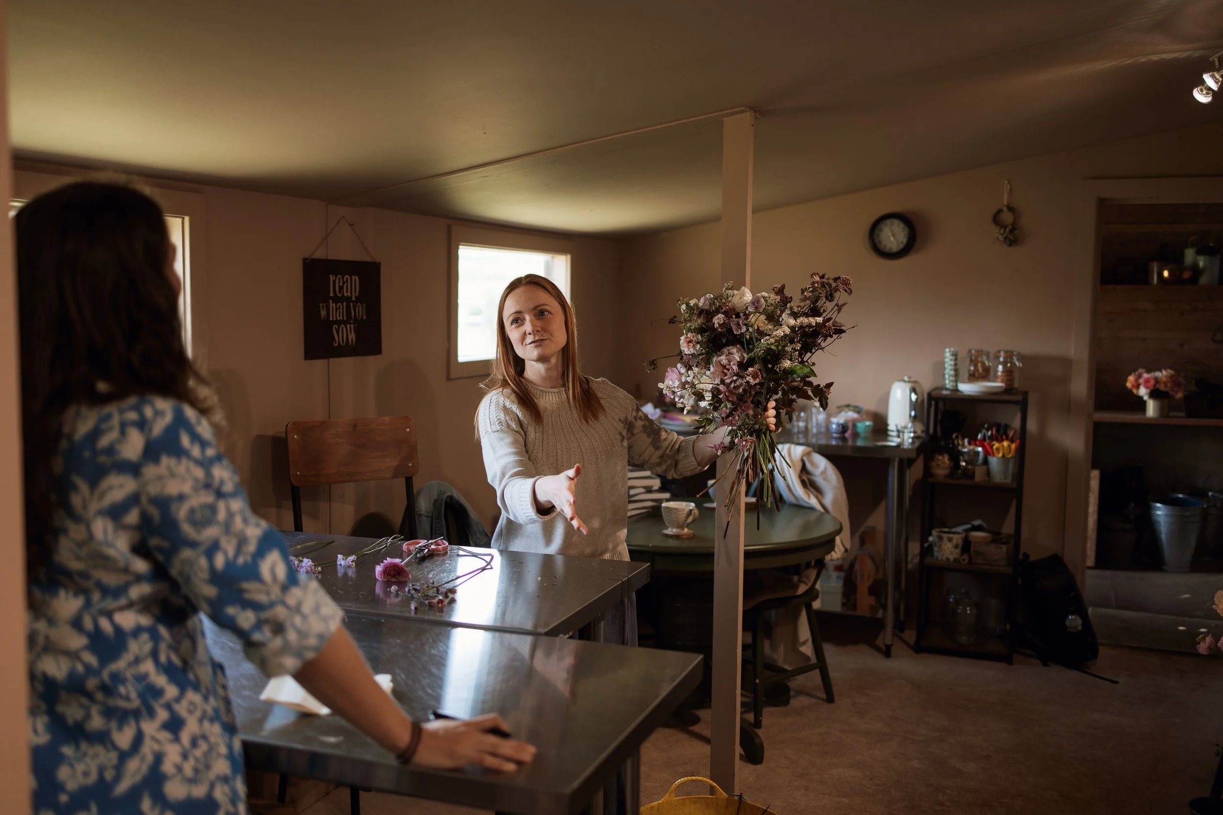 We are passionate about sharing our love of seasonal flowers with others. Throughout the year we open up our studio and cutting garden for bespoke classes and demonstrations, providing a special experience and a moment of escapism. Whether you are a beginner, an avid flower arranger, or an experienced florist, we aim to provide a class just for you. Please look back soon to see what we have coming up in 2026. If you wish to book onto any of our group classes you can do so via the shop.